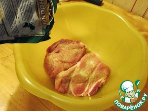 Специи любые, на ваш вкус, только не увлекайтесь ими, что б не перебить вкус мяса.