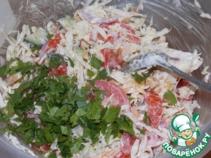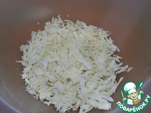 Капусту мелко нашинковать, выложить в миску.