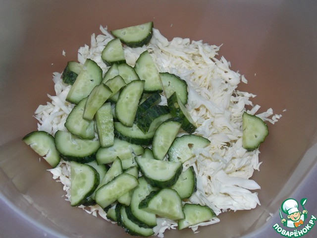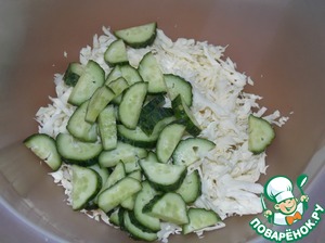 Добавить нарезанные огурчики.