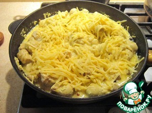 Посыпаем сыром грибы и оставляем под крышкой ещё на пять минут.