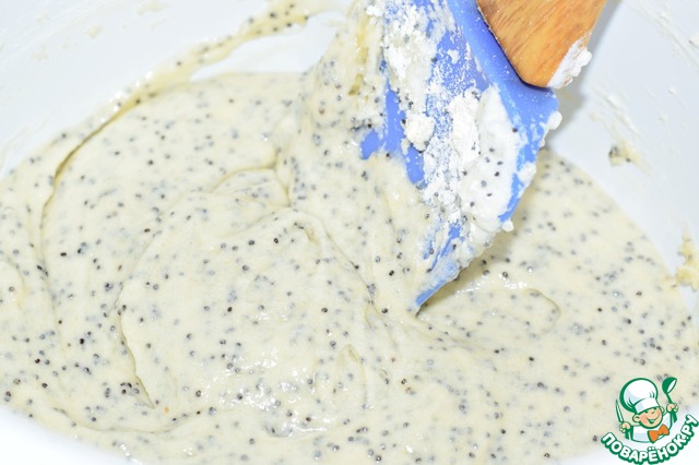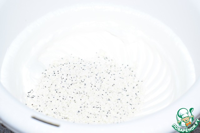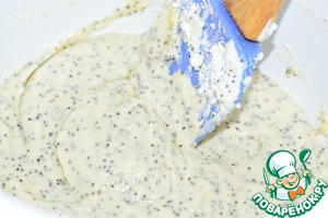 • Пока белки взбиваются, смешать просеянную муку с разрыхлителем, сахаром, крахмалом (картофельным или кукурузным) и сухим маком.