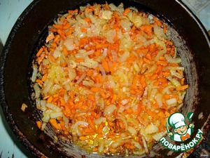Лук и морковь измельчить и обжарить на растительном масле.
