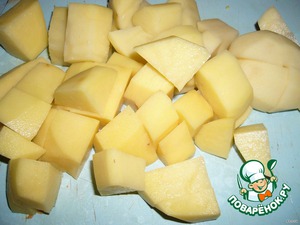 Картофель очистить, порезать небольшими кусочками, добавить к сердечкам. Варить 10 мин.