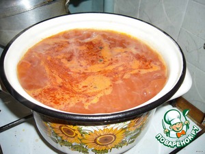 Добавить зажарку в суп, кипеть 5 мин. Кукурузу открыть и вместе с "рассолом" всыпать в суп. Кипеть 10 мин.