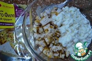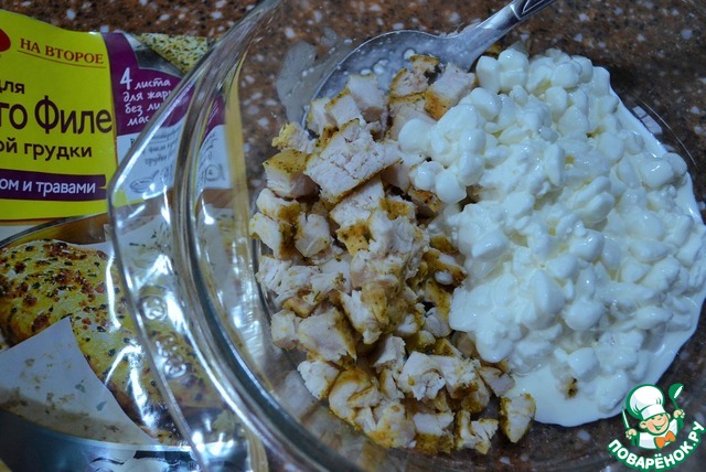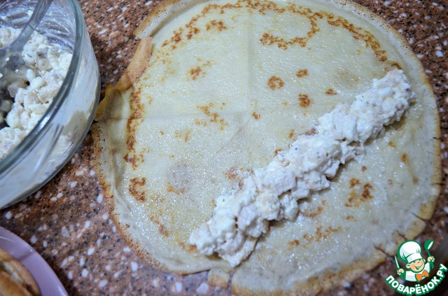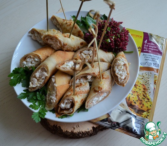 Рецепт «Блинчики с творожно-куриной начинкой»: