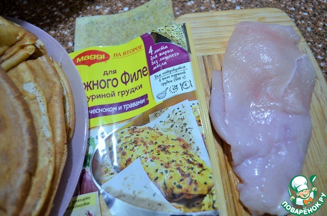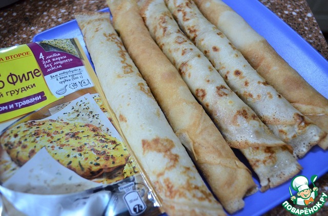 Ингредиенты для «Блинчики с творожно-куриной начинкой»: