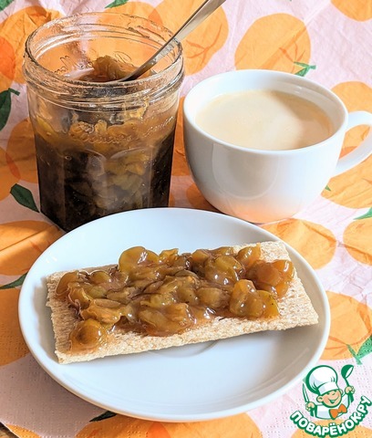 По консистенции - как варенье из черешни, а на вкус - изюм в выпечке. Поэтому это варенье сочетается с печеньками, крекерами и прочими хлебобулочными изделиями умеренной сладости.