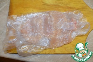Отбить филе и уложить на одну половинку листа с приправами MAGGI®