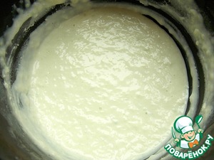 Пока грудка остывает, готовим соус. Для этого доводим сливки до кипения, добавляем натертый плавленный сырок и варим до однородной массы. Снимаем, даем остыть, добавляем васаби и перемешиваем до однородной массы. Для того, чтобы легче было потереть плавленный сырок, нужно немного его подморозить, а терку смазать растительным маслом.
