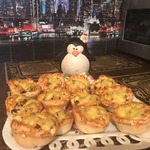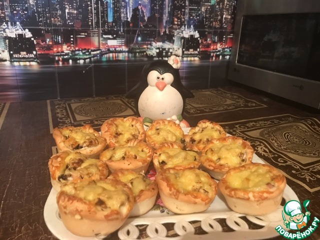 Тесто раскатать, вырезать круги и уложить в смазанную форму для маффин. Положить на тесто немного кетчупа.