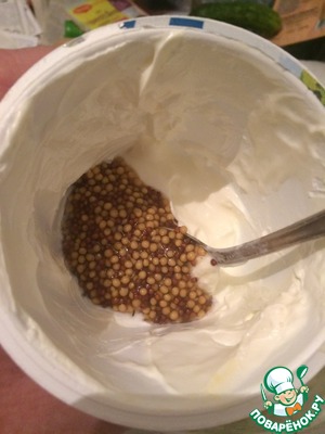 В сметану добавьте горчицу, сок лимона, сахар, соль-перемешайте.