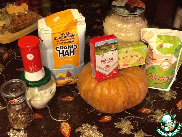 Ингредиенты для «Пирожки с тыквой и рисом»:
