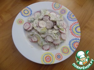Подаём. Я обожаю редис со сметаной, вот и использовала для заправки сметану.
