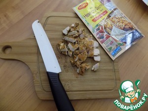 Грудка, обжаренная в листах Maggi для нежного филе куриной грудки по-итальянски, нам понадобится остывшая. Я сделала грудку, следуя указаниям на упаковке, заранее.