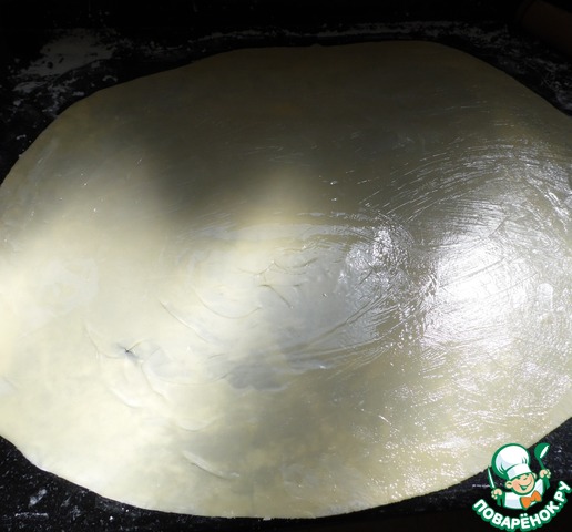 Лучше всего раскатывать тесто на столе посыпанном крахмалом, тесто получается более гладким, но это не обязательно, раскатайте шар в прямоугольный пласт толщиной 0,5 миллиметра, раскатанное тесто смажьте растопленным топлёным или сливочным маслом,.. Самая вкусная самса получается из слоёного теста, приготовленного на топлёном масле.