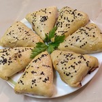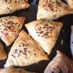 Самсу выкладываем на противень швом вниз. Смажьте самсу желтком и при желании посыпьте кунжутом или чернушкой