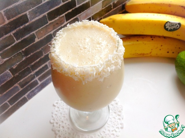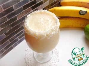 Если есть желание удивить близких, предлагаю украсить бокал. Наружный ободок смазать тонким слоем мёда и окунуть в тарелку с кокосовой стружкой.