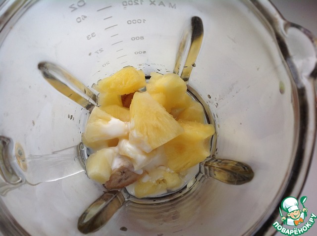 - Ананас (кусочками свежий или консервированный вместе с заливкой) — 1 стак.