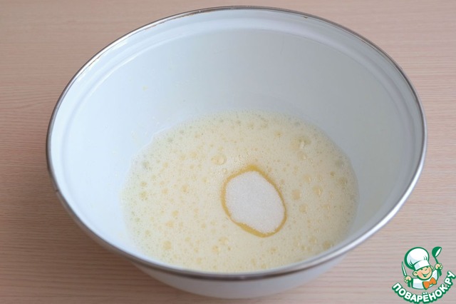 Готовим сливочный крем. Яйцо (1 шт.) взбить в пену, добавить сливки (1 стакан), добавить сахар (5 ст. ложек), добавить ванильный сахар (1 ч. ложка), 2 ст. л. муки. Смесь хорошо взбить