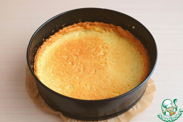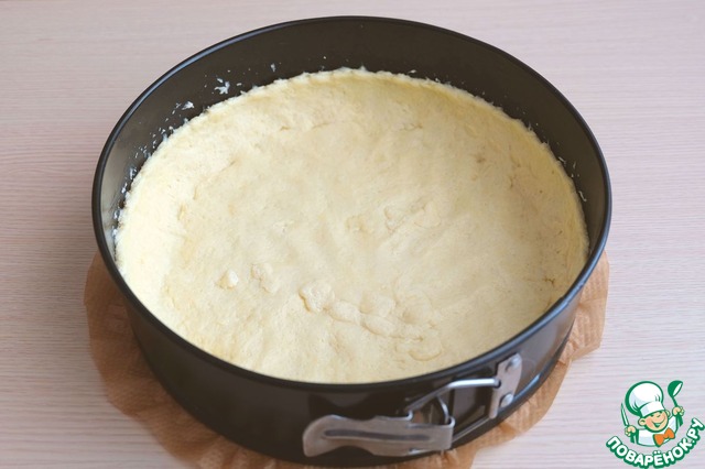 Форму с песочным коржом поместить в разогретый до t180С духовой шкаф и слегка запечь до золотистого цвета