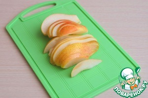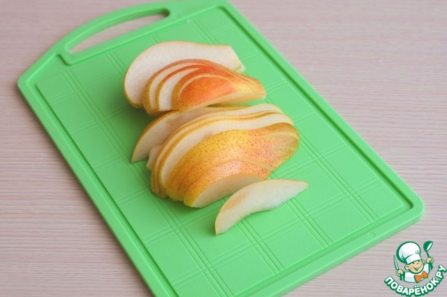 Из груш удалить сердцевину, нарезать груши тонкими пластиками