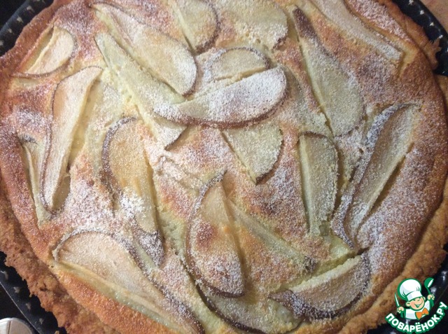 Добавить груши форму с песочным коржом, добавить приготовленный крем. Поместить форму в разогретый до t180-190С духовой шкаф. Выпекать до готовности. Хочу обратить внимание, что температурный режим и время выпекания каждый выбирает самостоятельно, ориентируясь на возможности своей духовки, у всех они разные