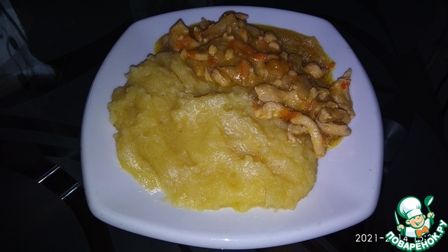 На сайте есть несколько рецептов пюре с таким названием. Но мой рецепт отличается от них. Несколько лет назад я взяла на вооружение этот рецепт из книги-рецептов к мультиварке-скороварке. Картофель получается очень нежным, с тонким ароматом жареного картофеля. Интересно? Заходите ко мне в гости.