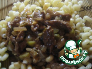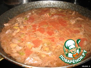 • Заливаем мясо и тушим под крышкой на маленьком огне ещё минут 15