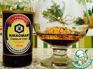 Для заправки смешиваем оставшееся масло с горчицей и соевым соусом