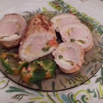 Вот решила потренироваться. Вместо маслин - сладкий перец. Получилось неказисто. Филе, в некоторых местах, отбила до дыр. Но на вкус нам понравилось. Сочно и ароматно. Буду пользоваться рецептом.