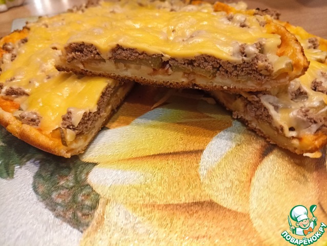 Раскатать тесто, диаметром 30 см. Я раскатывала на силиконовом коврике, на нём же и готовила в духовке, очень удобно:)