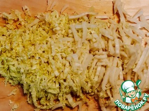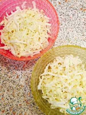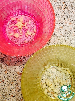 • На дно салатника (у меня их два) положить измельченный чеснок