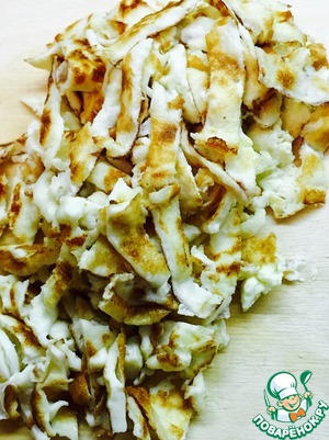 • Сверху чеснока выложить нарезанное филе, смазать майонезом