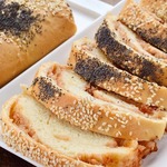 А чтобы кунжут и мак меньше опадали с уже готового рулета, опрыскайте из пульверизатора рулет водой поверх семечек. -