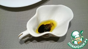 Для приготовления заправки смешиваем оливковое масло с бальзамиком, а также солью и перцем, до образования эмульсии.