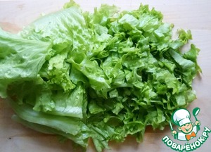 Равномерно распределяем нашинкованные листья салата между салатниками, поверх укладываем помидор.