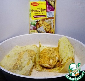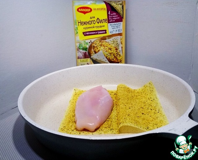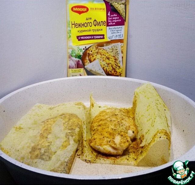 - Приправа (листы для жарки MAGGI® На второе для нежного филе куриной грудки c чесноком и травами) — 2 шт