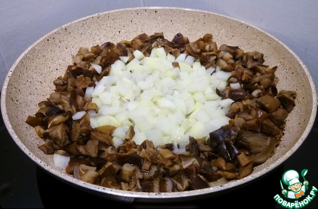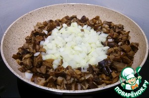 Обжариваем грибы вместе с измельченным луком практически до готовности.