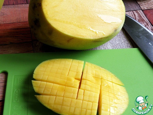 Манго нарезать мелкими кубиками.