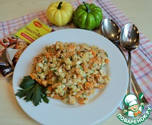 Именно в начале осени на наших столах спелая тыква, вырос корневой сельдерей. Отсюда и название, салат немного необычен, но любителям сельдерея он обязательно понравится. Рекомендую и не любителям, т. к. вкус его особо и не заметен, а вот пользы "через край". Угощайтесь.
