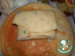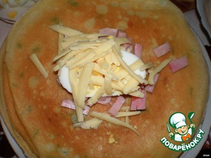 Рецепт «Блинные конвертики с сыром и ветчиной»: