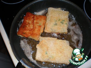 Каждый блинчик обмазать яйцом, обвалять в сухариках. Обжарить на растительном масле.