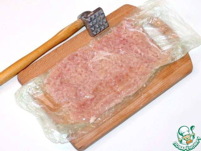 2. Куриную грудку отбить с двух сторон до толщины 1,5-2 см.