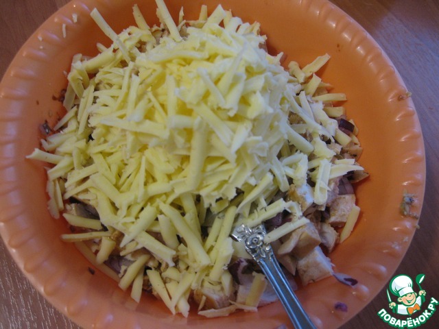 Сыр натереть на терке, все перемешать, - начинка для пирожков готова.