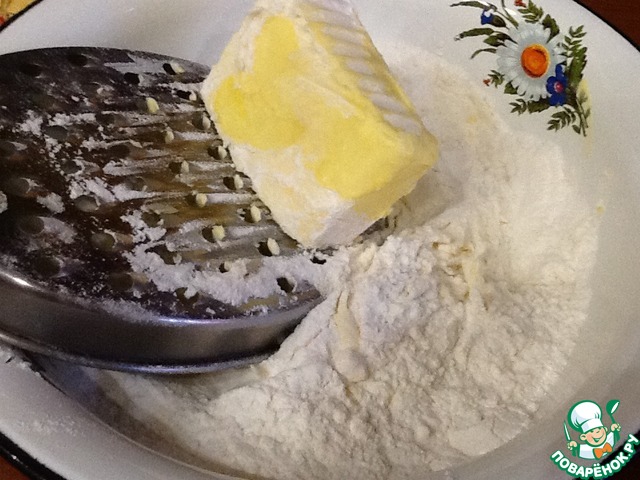 Муку просеять, масло достать из холодильника. Натереть масло в муку. Сделать крошку из масла и муки.