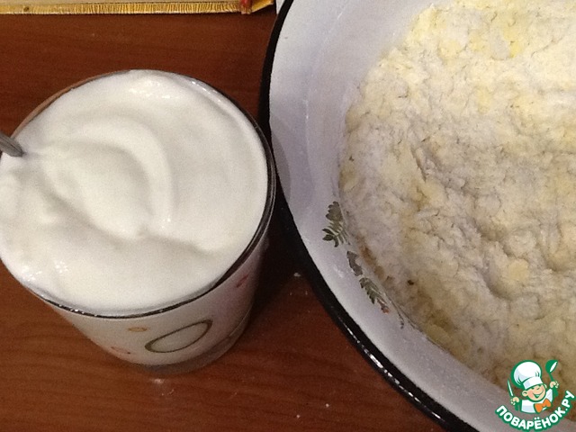 В сметану добавить соду, перемешать, добавить в крошку, замешать мягкое тесто. Если необходимо можно добавить немного муки.