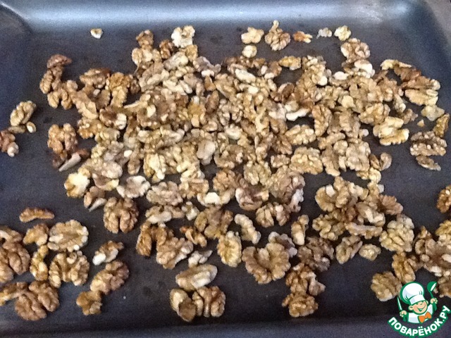 Для начинки орехи надо помыть и поджарить немного либо на сухо сковороде либо в духовке как я. Так вкус орешков будет ярче.