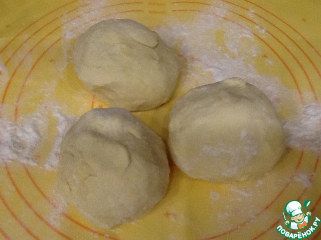 Начинаем собирать нашу восточную сладость. Тесто делим на три части. Начинку на две.