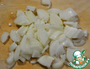 Режем лук, отправляем его жариться на сковороду с растительным маслом.