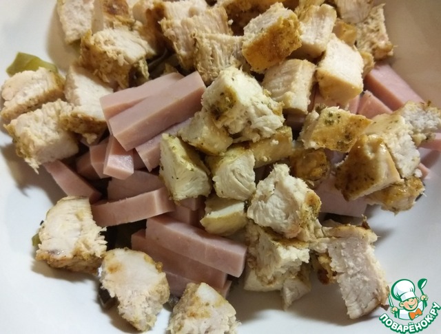 Очень сытный мясной салат, который наверняка понравится сильному полу.